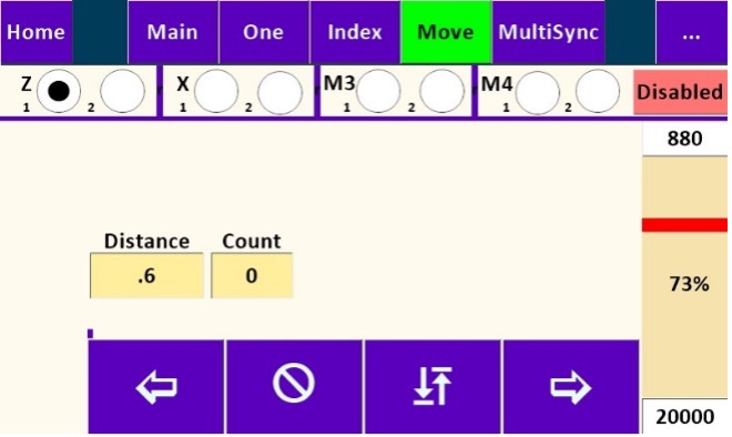 Purpose: This screen allows for movement along the a linear axis. The movement is for a specific distance and direction.