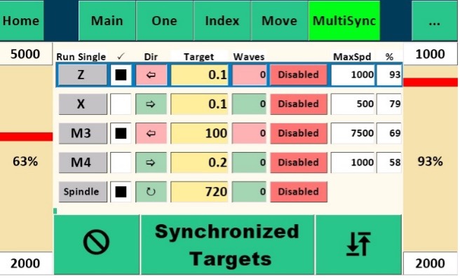 Purpose: This screen allows the turner to run multiple motors synchronously, or individual motors continuously.