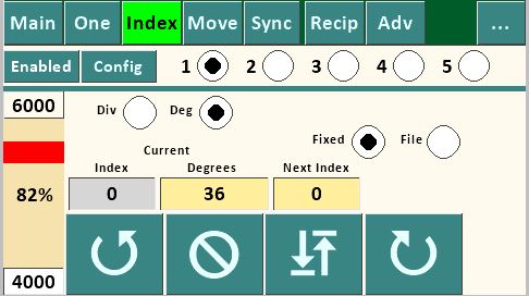 In the example below, you can see on the left the screen that the user is trying to use a fixed setting of 36° per index, and saving that value in index memory #1. When the