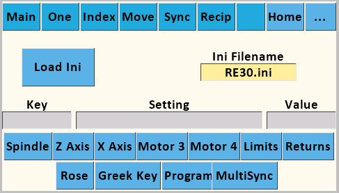When loading the RE30.ini file, check to ensure that each of the keys in your file gets loaded. Watch the Key field on that screen as the values are loaded to ensure each of the following are loaded. If one or more is not, those values will not be set, and the system will probably not work correctly, or at least as expected.